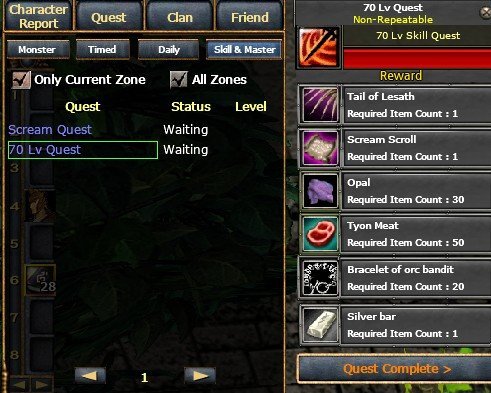 System Posted February 15 Share Posted February 15 ⚔️ Warrior Level 70 Skill Quest To complete the Warrior LVL 70 Quest, follow these steps: 1️⃣ Press U 2️⃣ Go to Quest 3️⃣ Click Skill & Master 4️⃣ Select Level 70 Skill Quest 📦 Required Items 1× Tail of Lesath 1× Silver Bar 1× Scream Scroll 30× Opal 50× Tyon Meat 20× Orc Bracelet ✅ How to Complete After collecting all required items: Click Quest Complete to unlock your Warrior Level 70 Skill. Link to comment Share on other sites More sharing options...